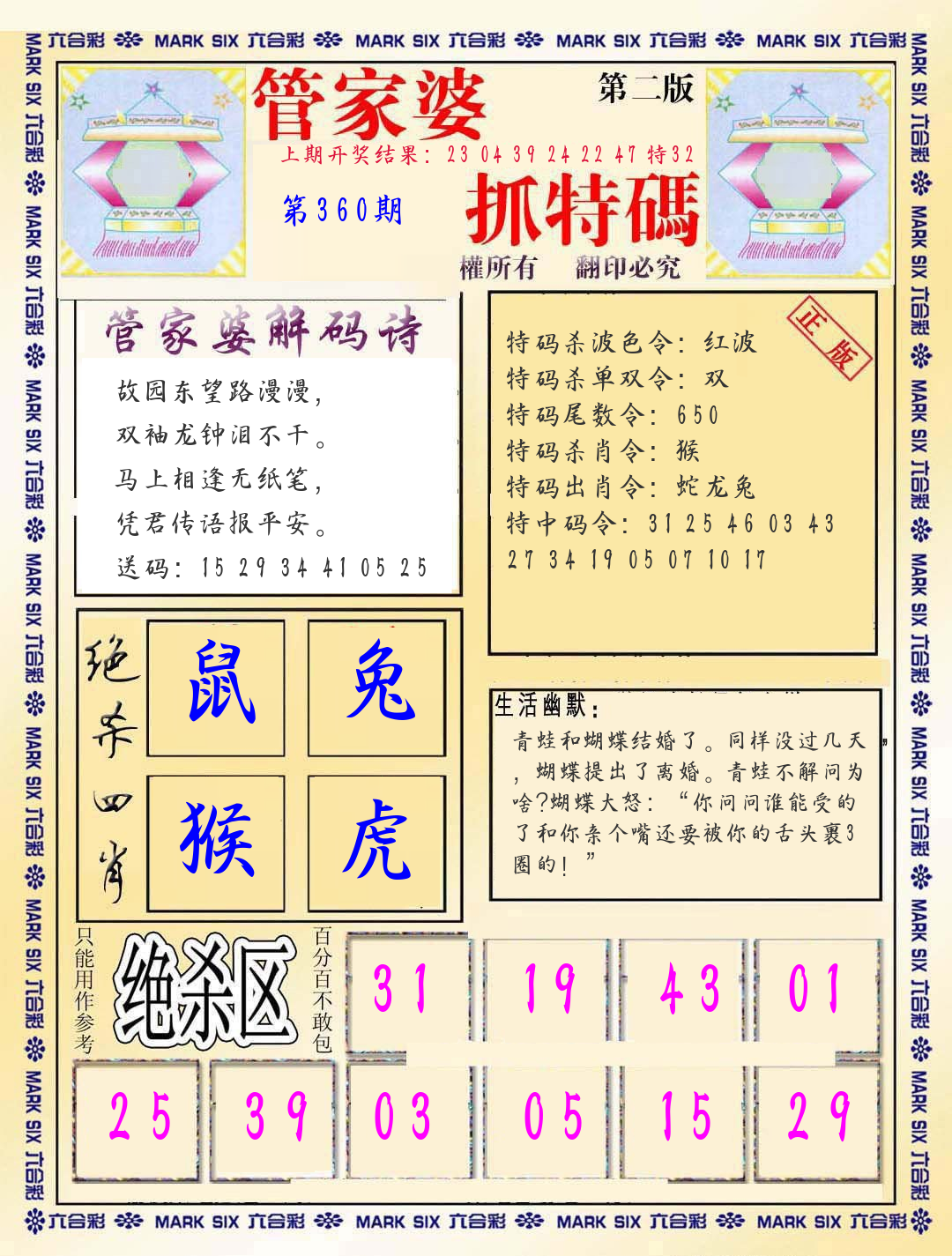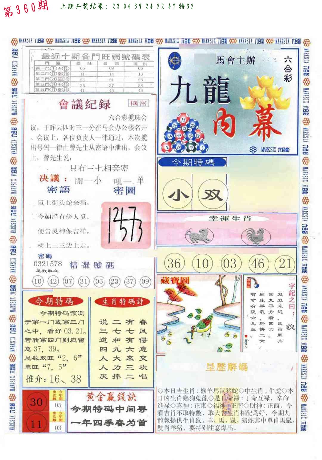 | 353期:澳洲六合彩四尾八码 开30鼠对 | |