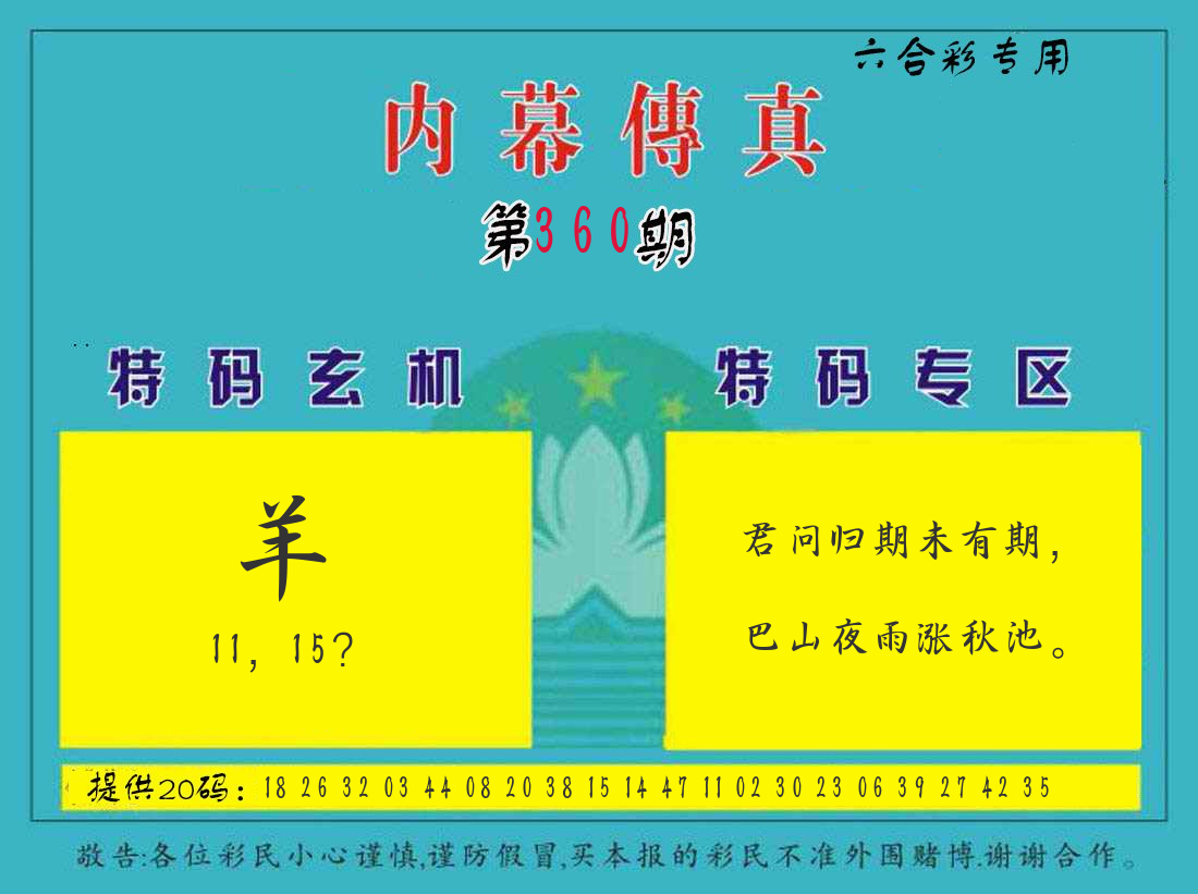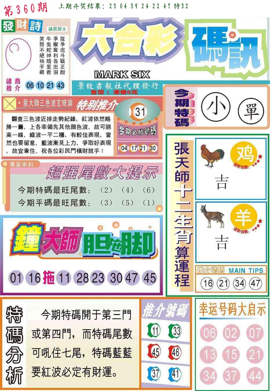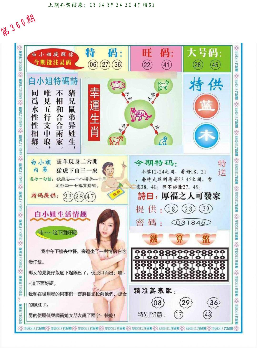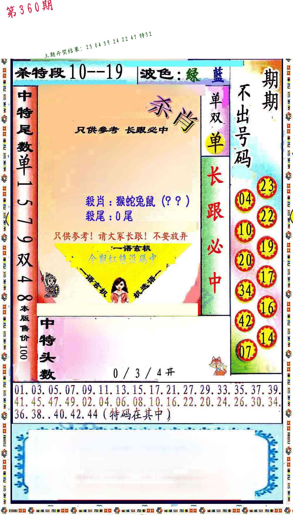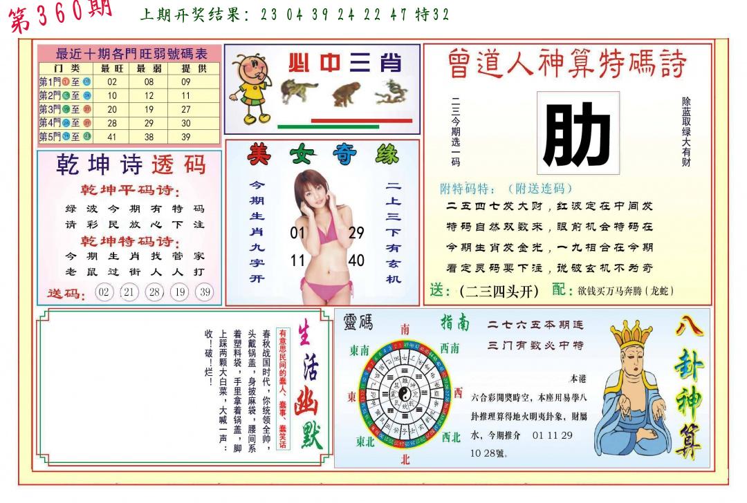 | 360期:澳洲六合彩四尾八码 开????? | |