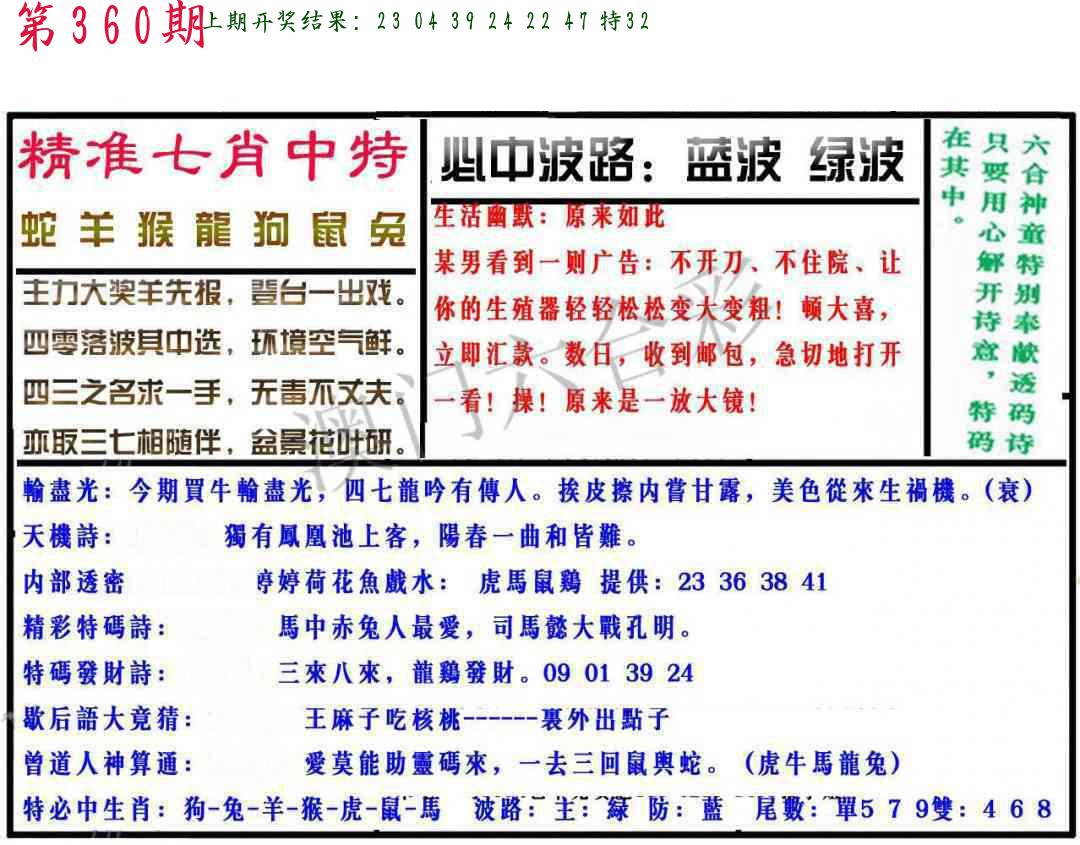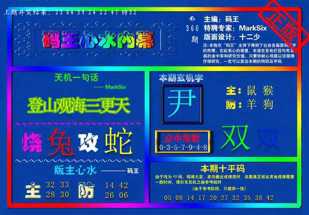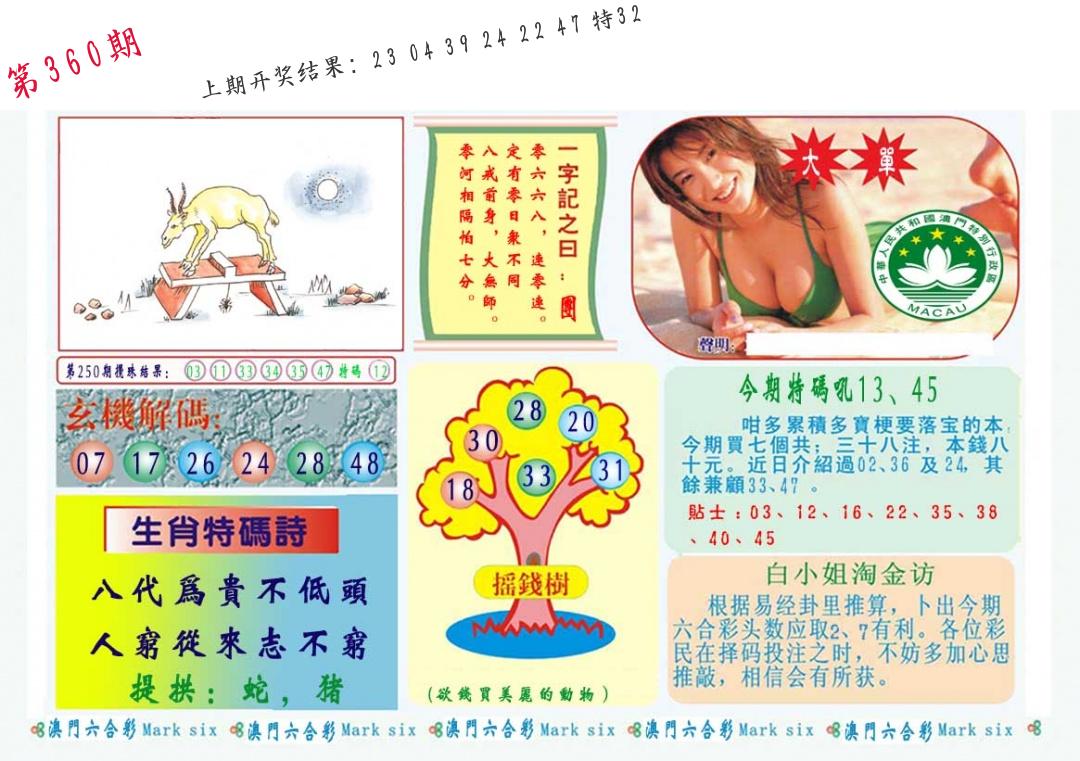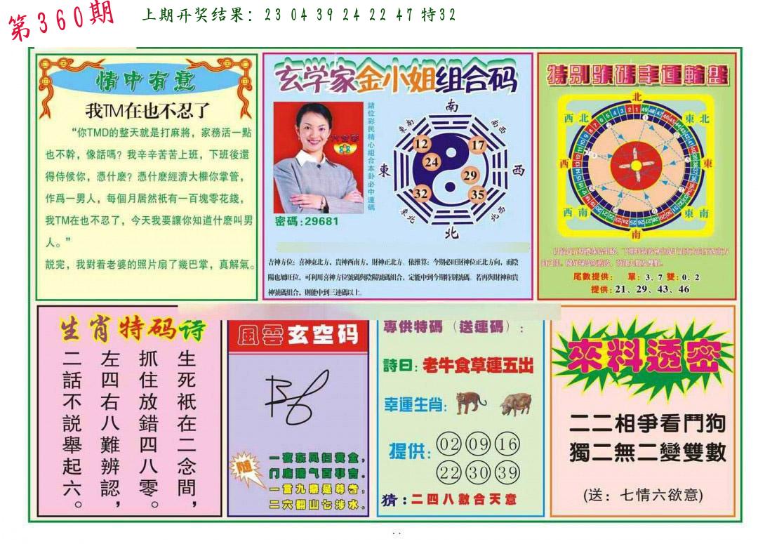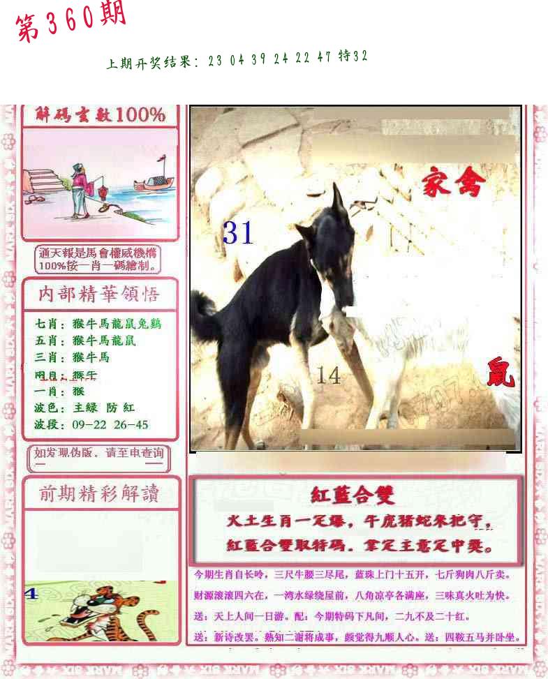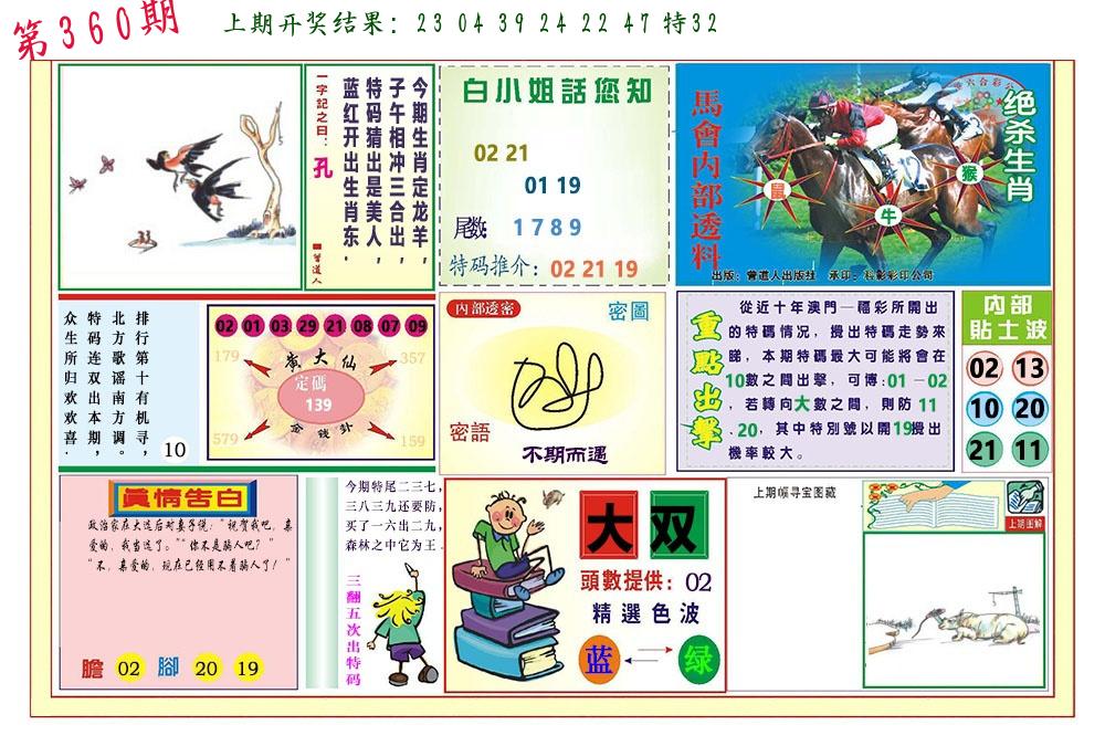 | 359期:澳洲六合彩四尾八码 开32狗对 | |